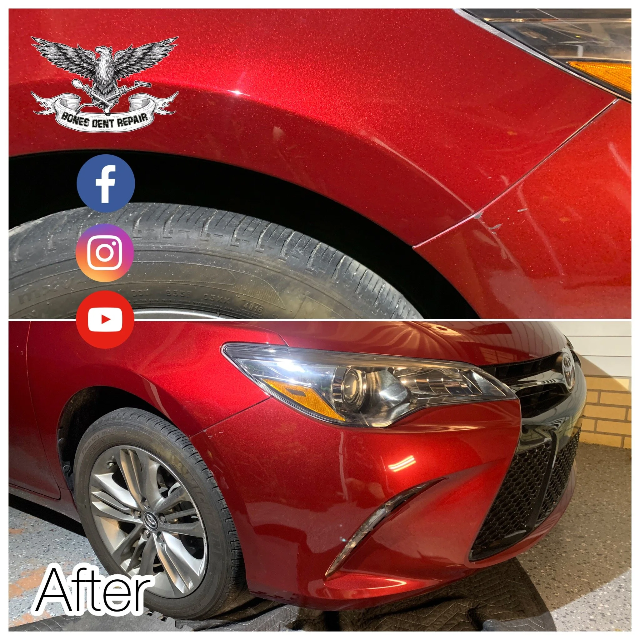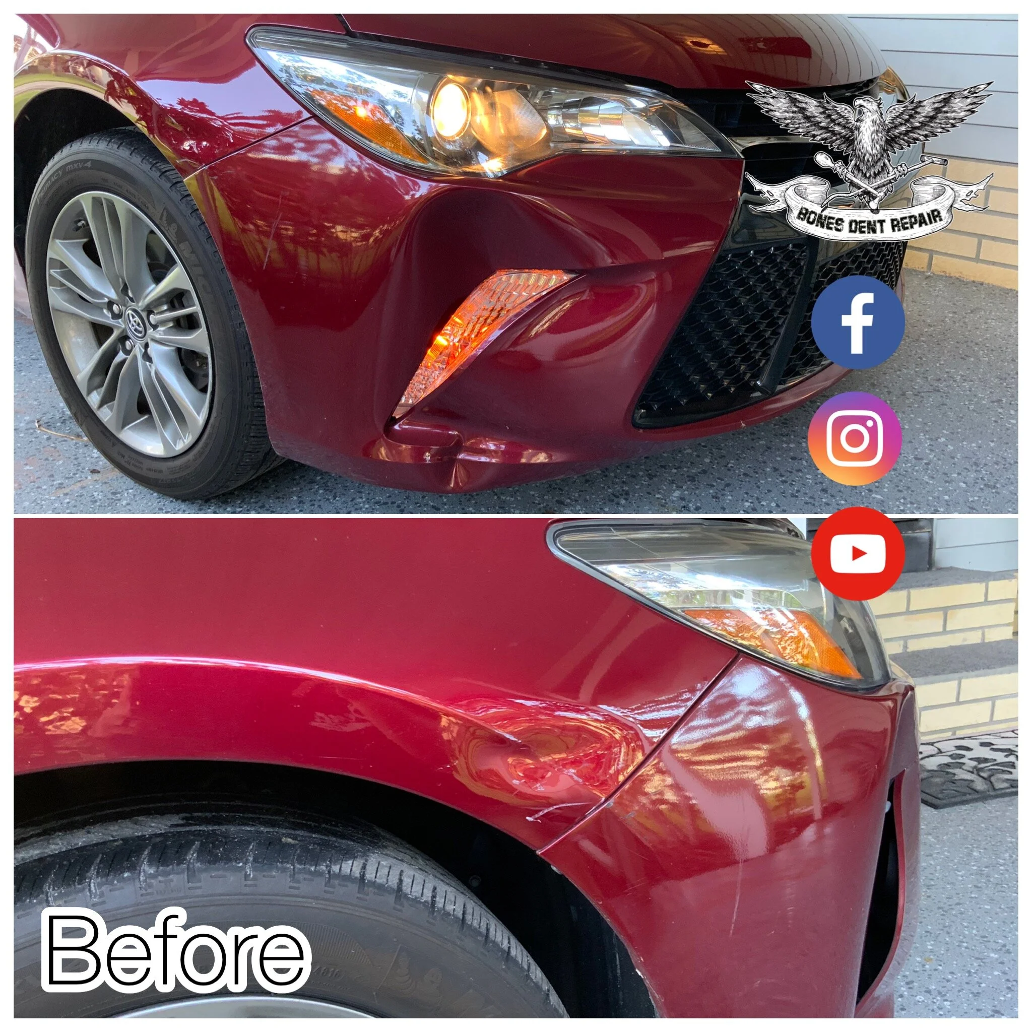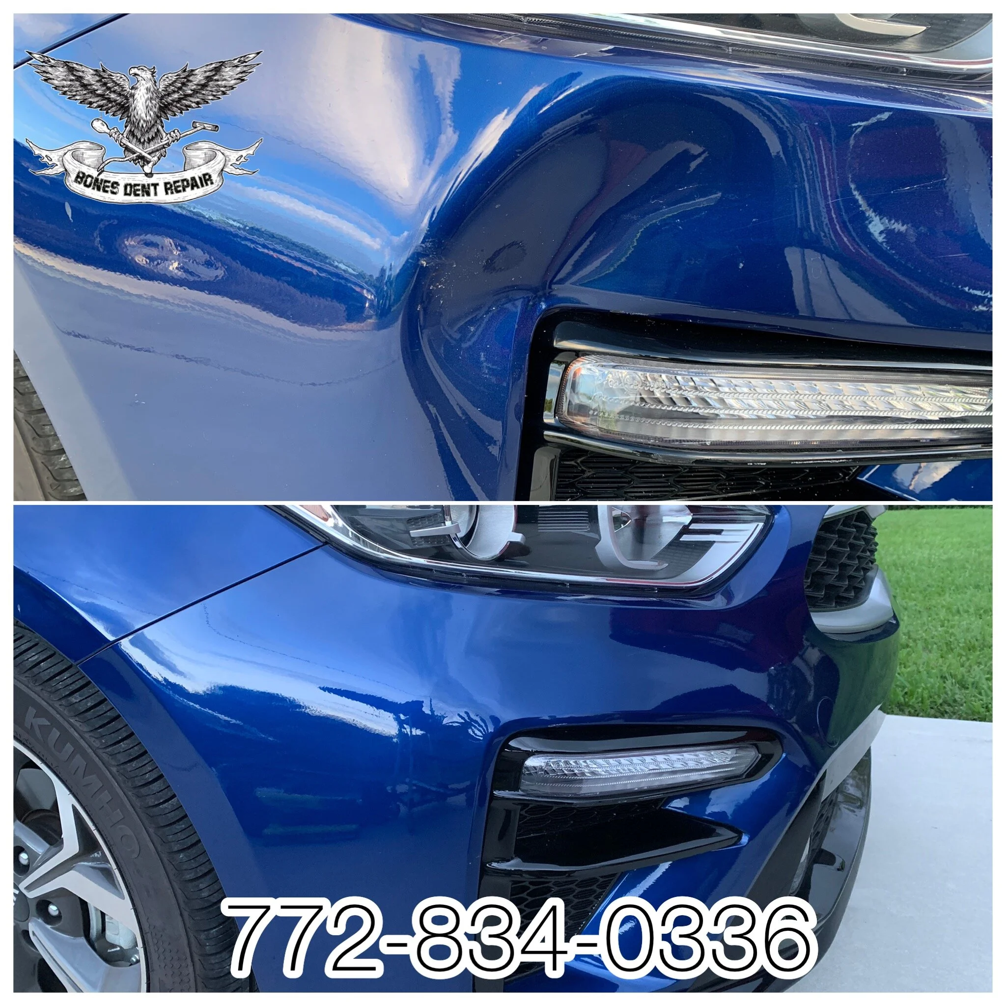 Bones Dent Repair is Treasure Coasts highest skilled technician capable of repairing large dents back to new condition with Paintless Dent Removal. Big dents are complex generally larger than 6” in size with many difficulty factors. Taking pride in my large dent repairs I often showcase them on my Youtube channel or Facebook with video results.